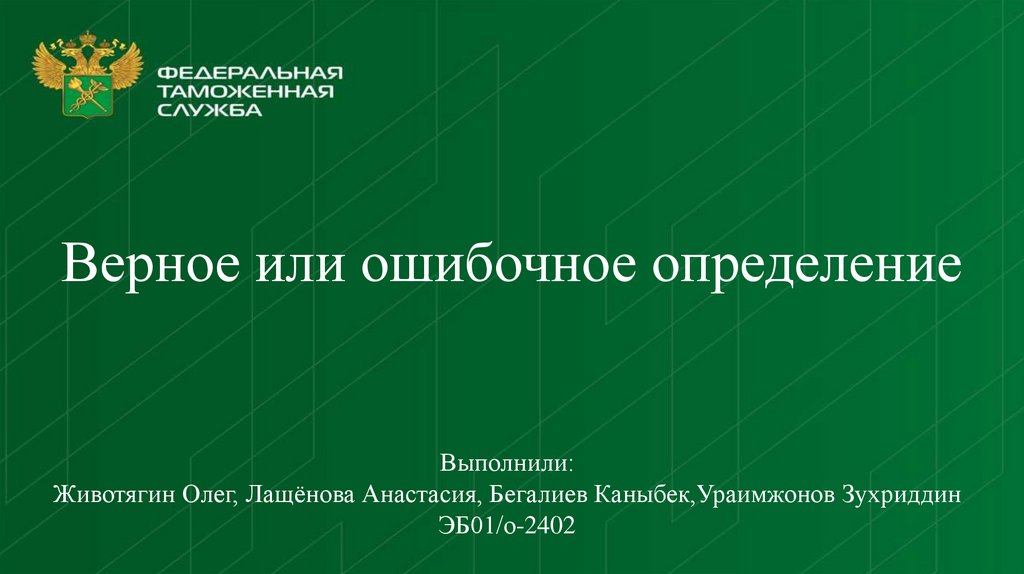 Верное или ошибочное определениеВыполнили: