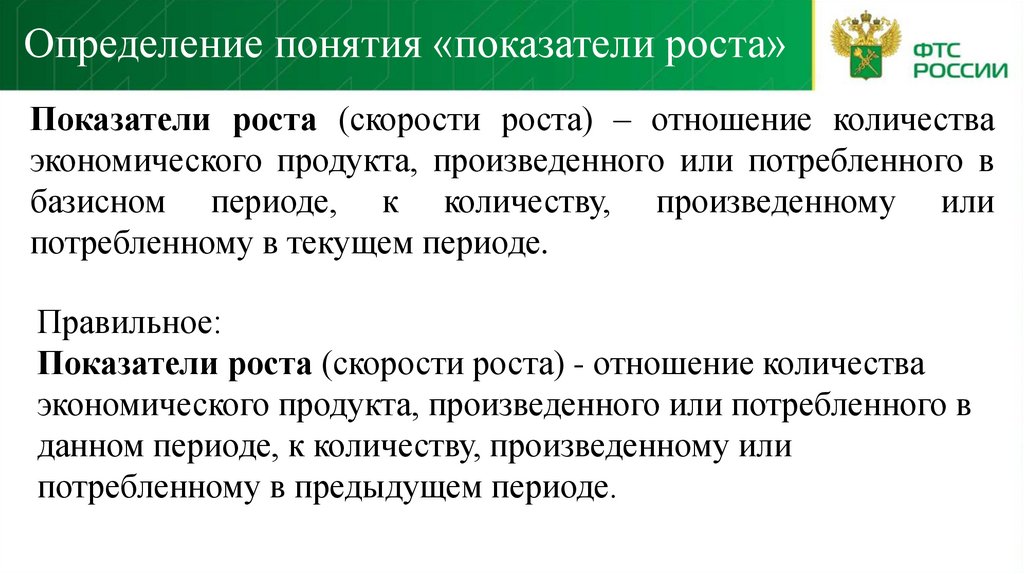 Определение понятия «показатели роста»Показатели роста (скорости роста) – отношение количества