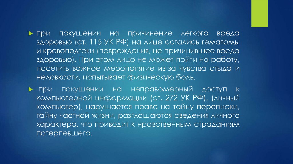 посягательства, способные причинить вред и нравственные