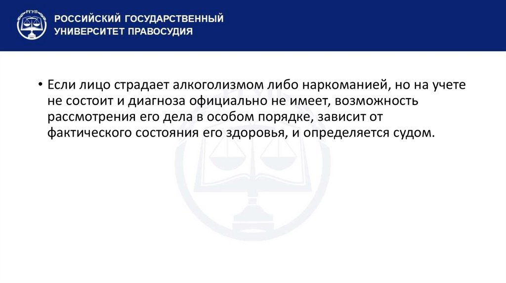 • Если лицо страдает алкоголизмом либо наркоманией, но на учетене состоит и диагноза официально не имеет, возможность