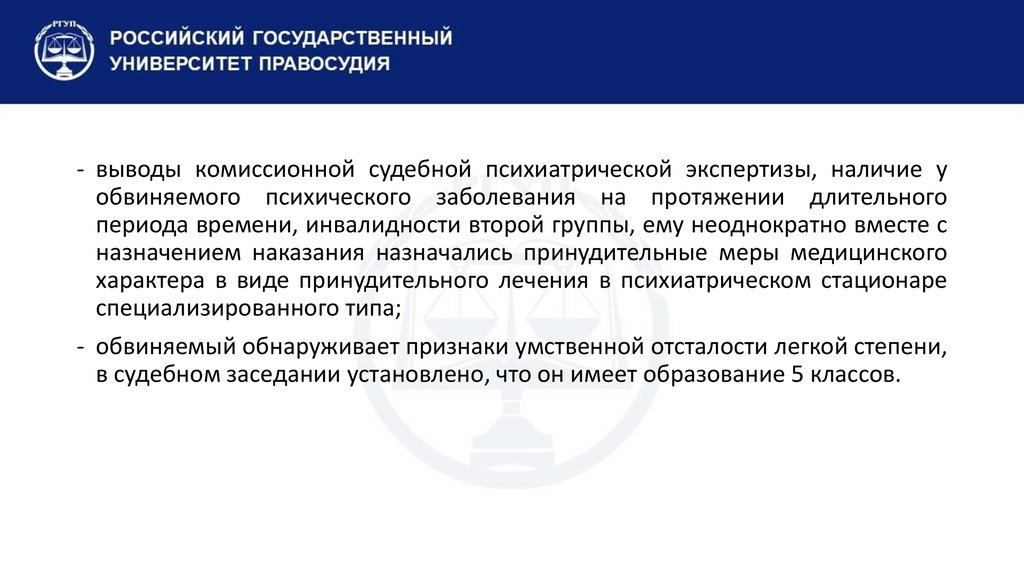 - выводы комиссионной судебной психиатрической экспертизы, наличие уобвиняемого психического заболевания на протяжении длительного