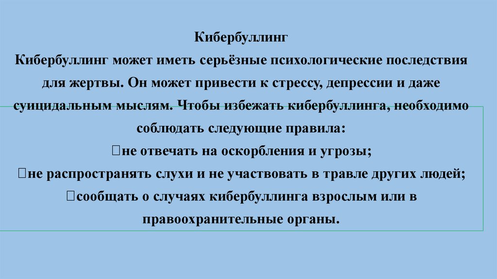 суицидальным мыслям. Чтобы избежать кибербуллинга, необходимо