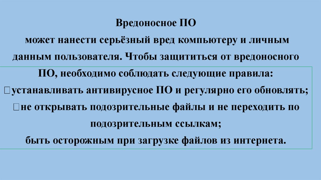 4.Вредоносное ПО — это программы, которые могут нанести вред компьютеру или украсть личные