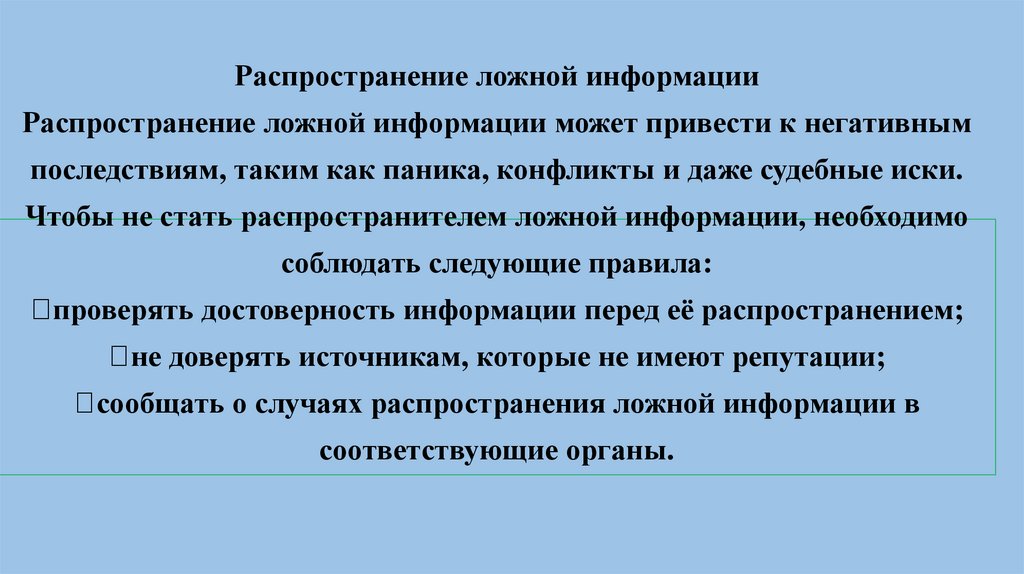 Распространение ложной информацииРаспространение ложной информации может привести к негативным