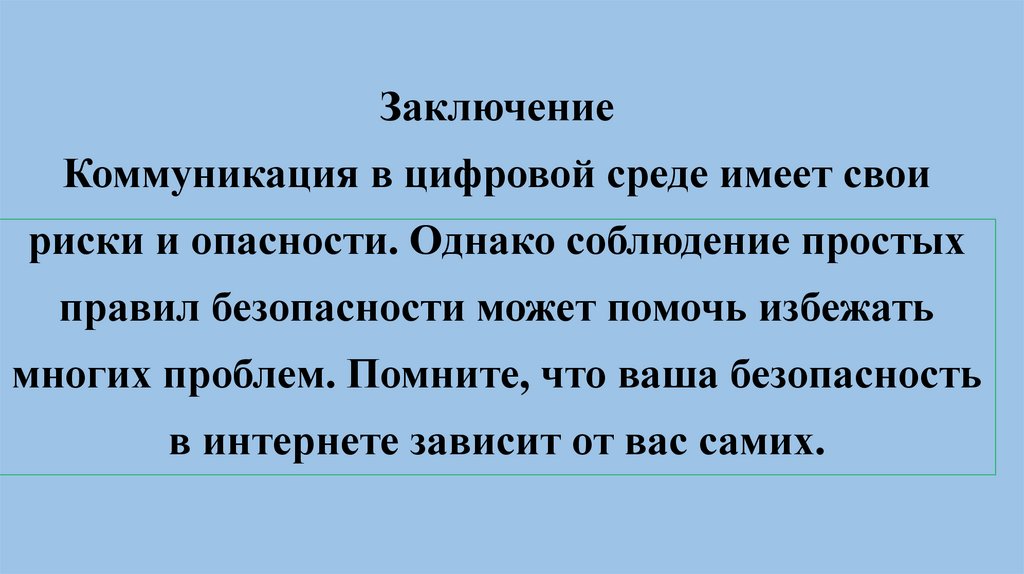 ЗаключениеКоммуникация в цифровой среде имеет свои