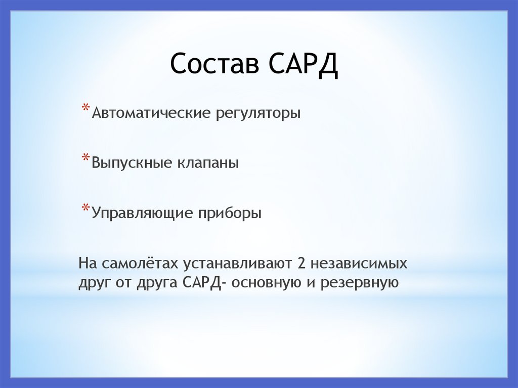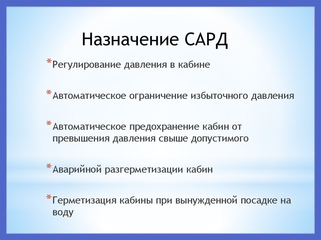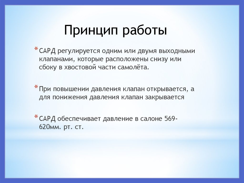 * САРД обеспечивает давление в салоне 569620мм. рт. ст.