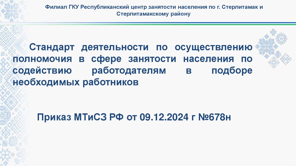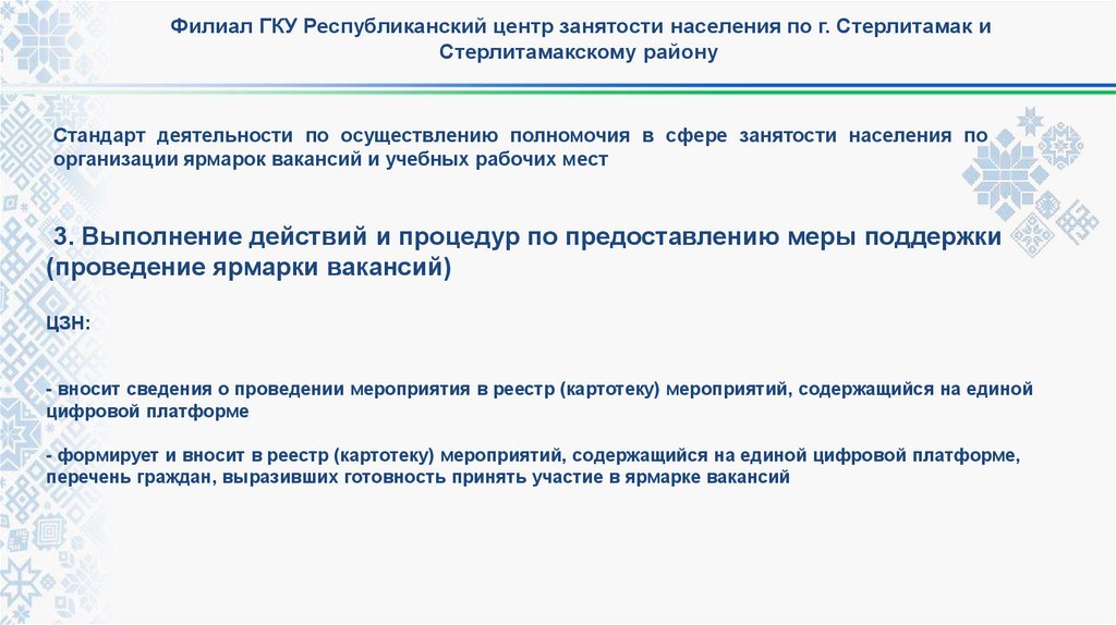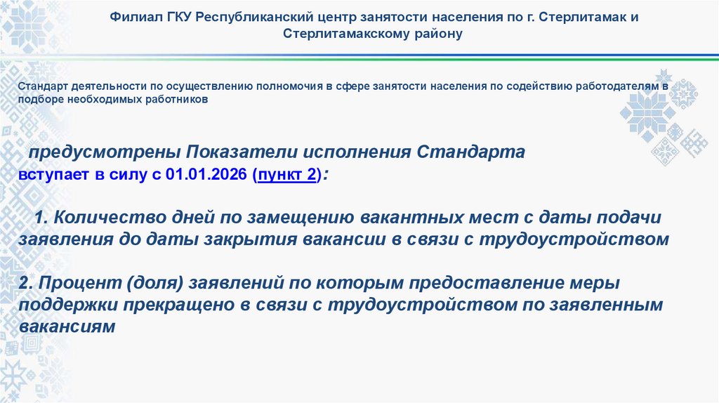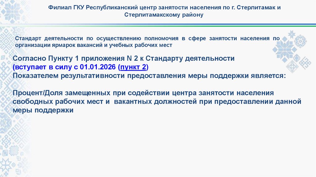 Стандарт деятельности по осуществлению полномочия в сфере занятости населения по
