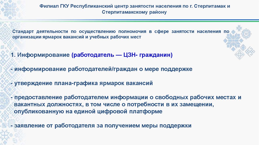 1. Информирование (работодатель - ЦЗН)