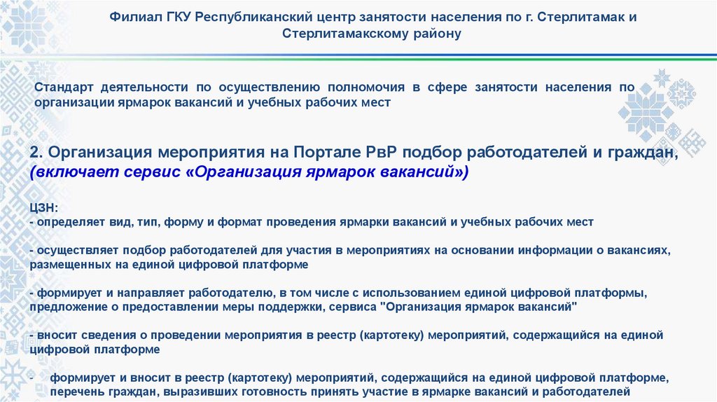 2. Организация мероприятия на Портале РвР подбор работодателей и граждан,