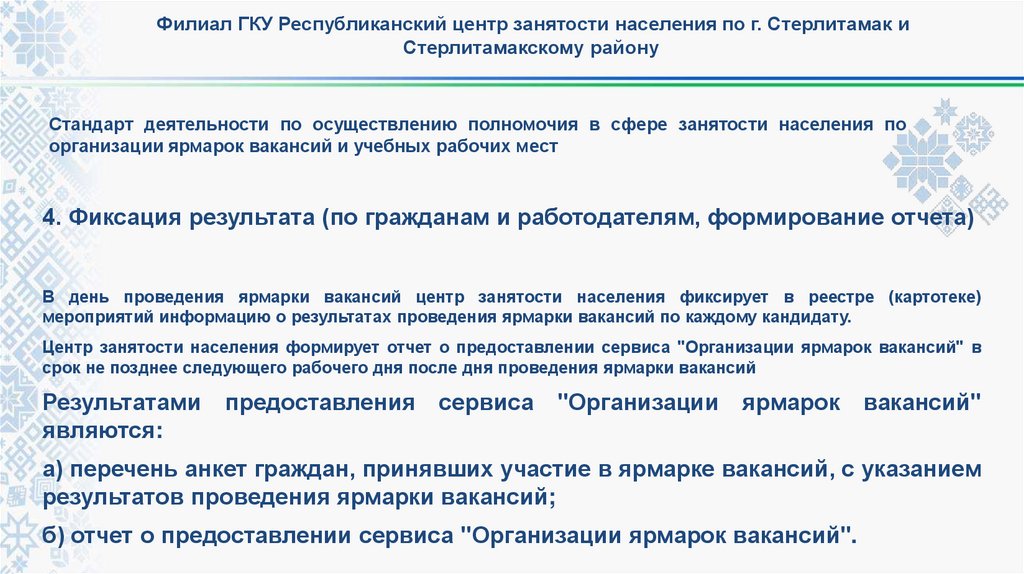 4. Фиксация результата (по гражданам и работодателям, формирование отчета)