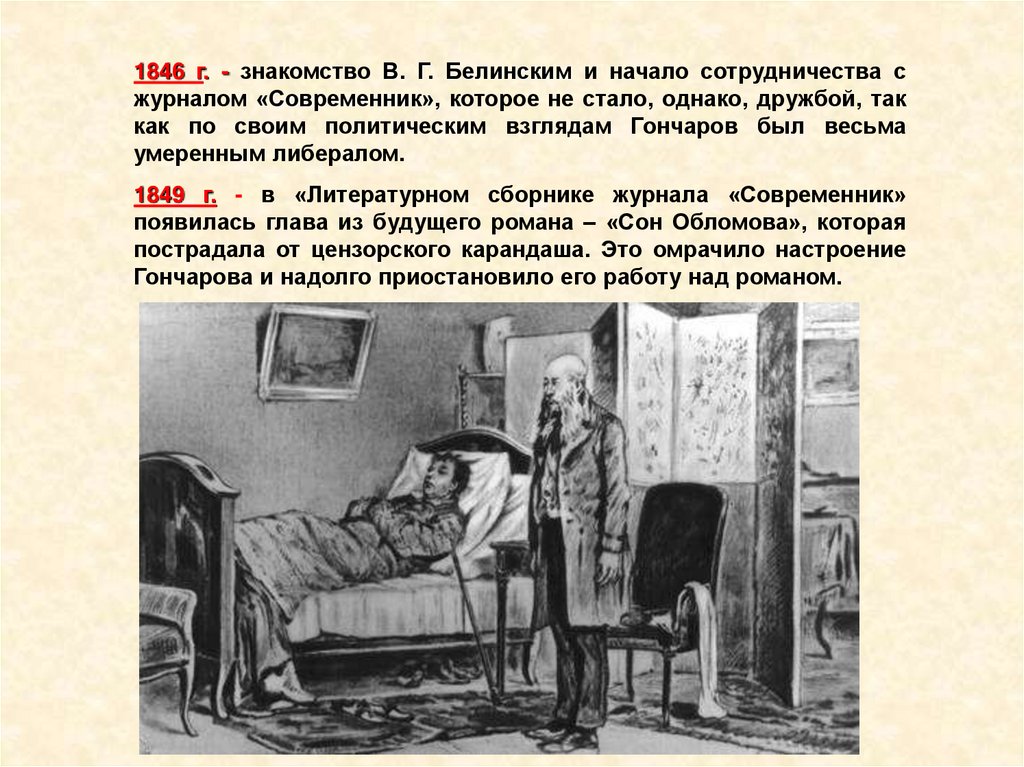 1848 год – первый вариант «Сна Обломова»Март 1849 г. – первая публикация «Сна Обломова»