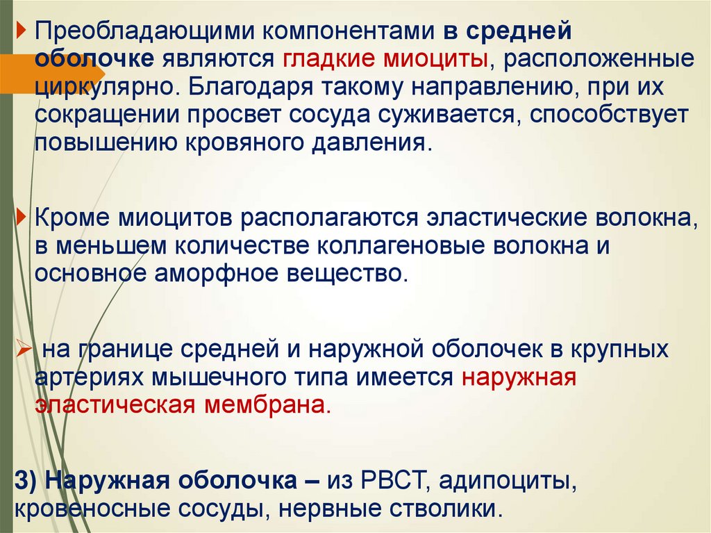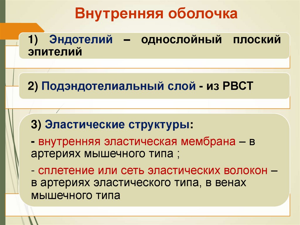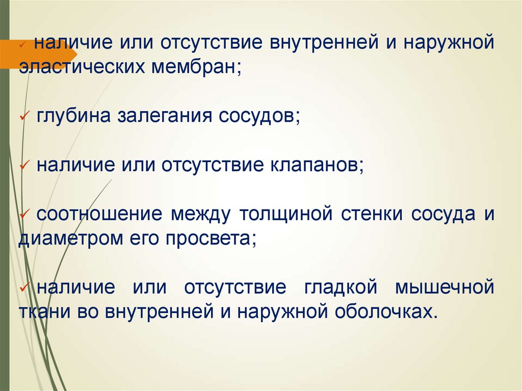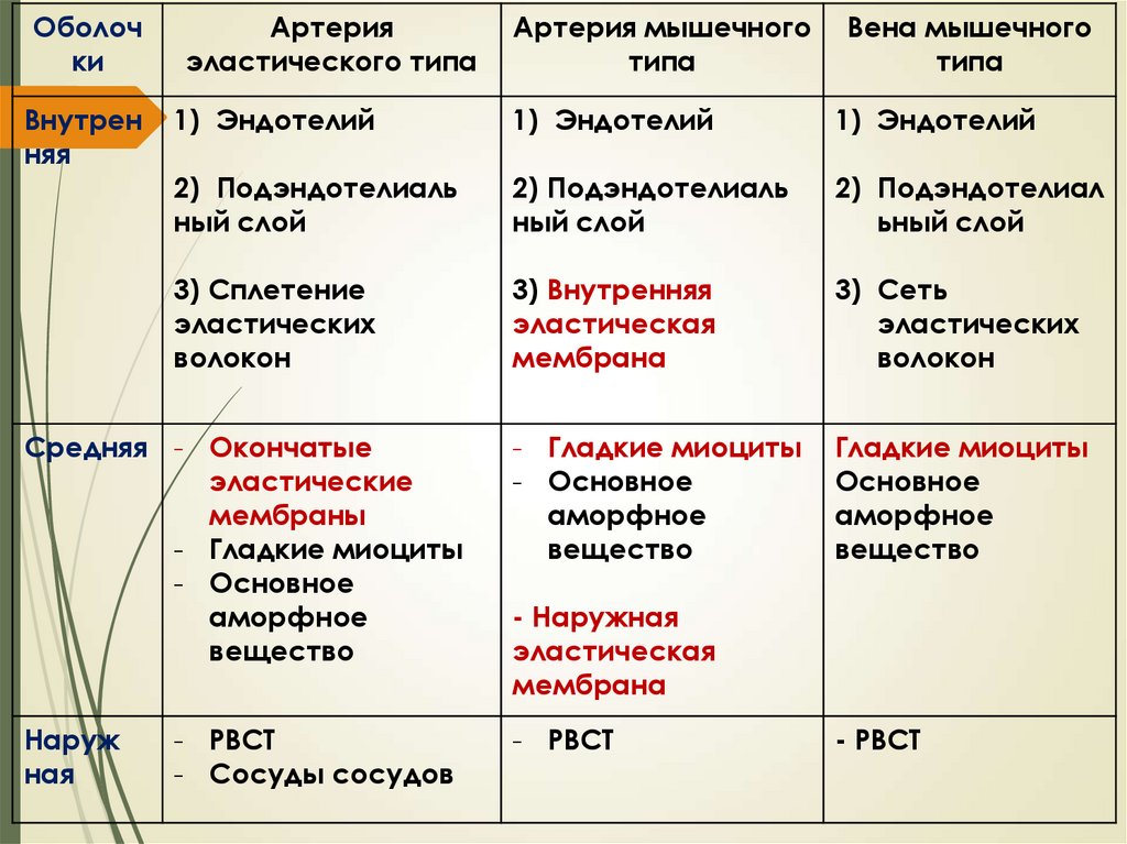 наличие или отсутствие внутренней и наружнойэластических мембран;