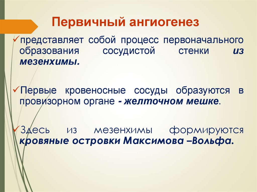 Первичный ангиогенезпредставляет собой процесс первоначального