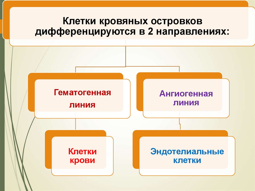 Клетки кровяных островковдифференцируются в 2 направлениях: