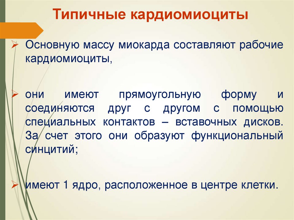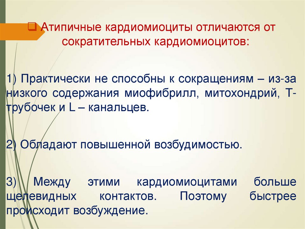 Атипичные кардиомиоциты отличаются отсократительных кардиомиоцитов: