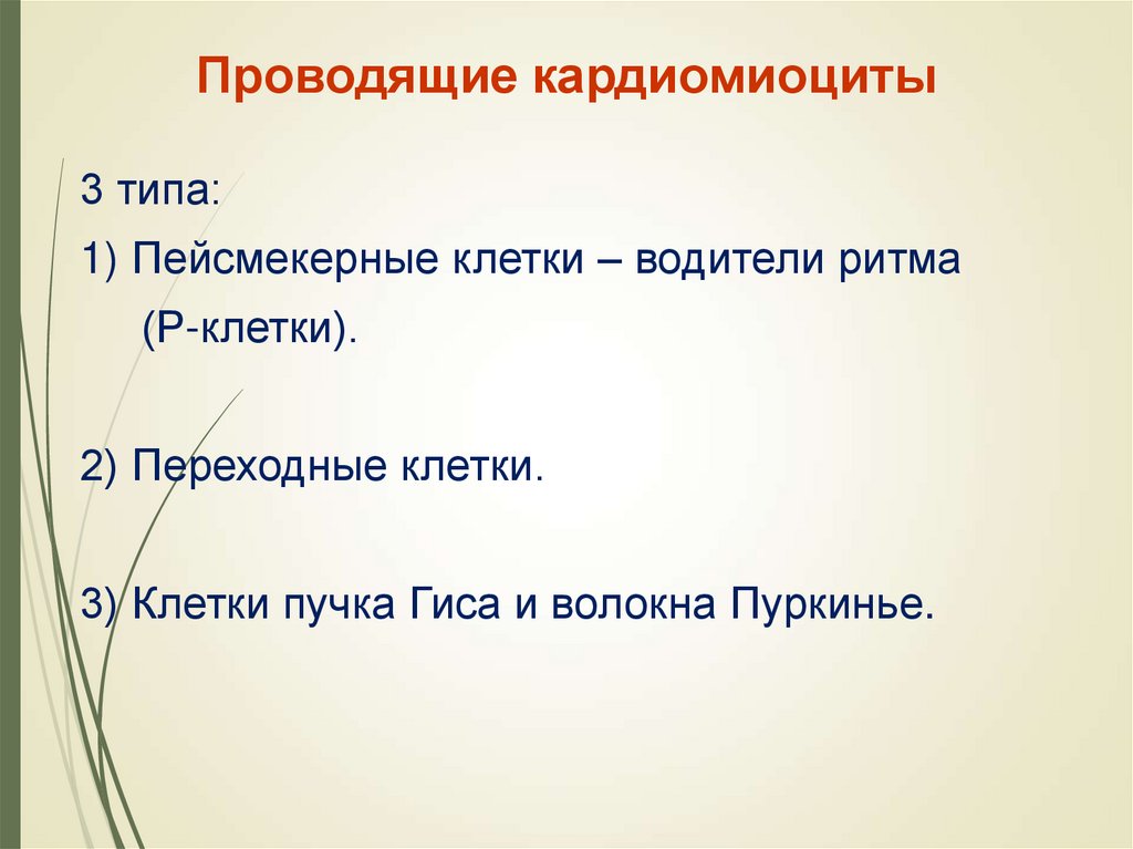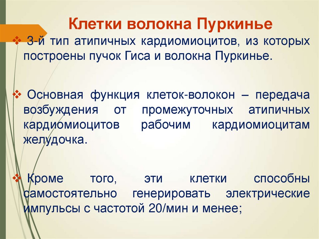 Клетки волокна Пуркинье3-й тип атипичных кардиомиоцитов, из которых