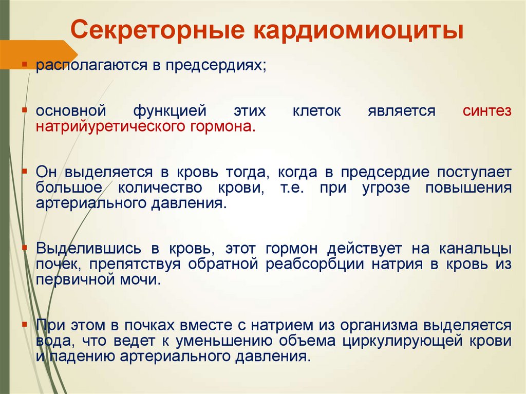 Он выделяется в кровь тогда, когда в предсердие поступает