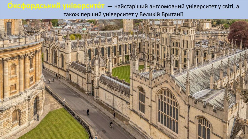 О́ксфордський університе́т — найстаріший англомовний університет у світі, атакож перший університет у Великій Британії