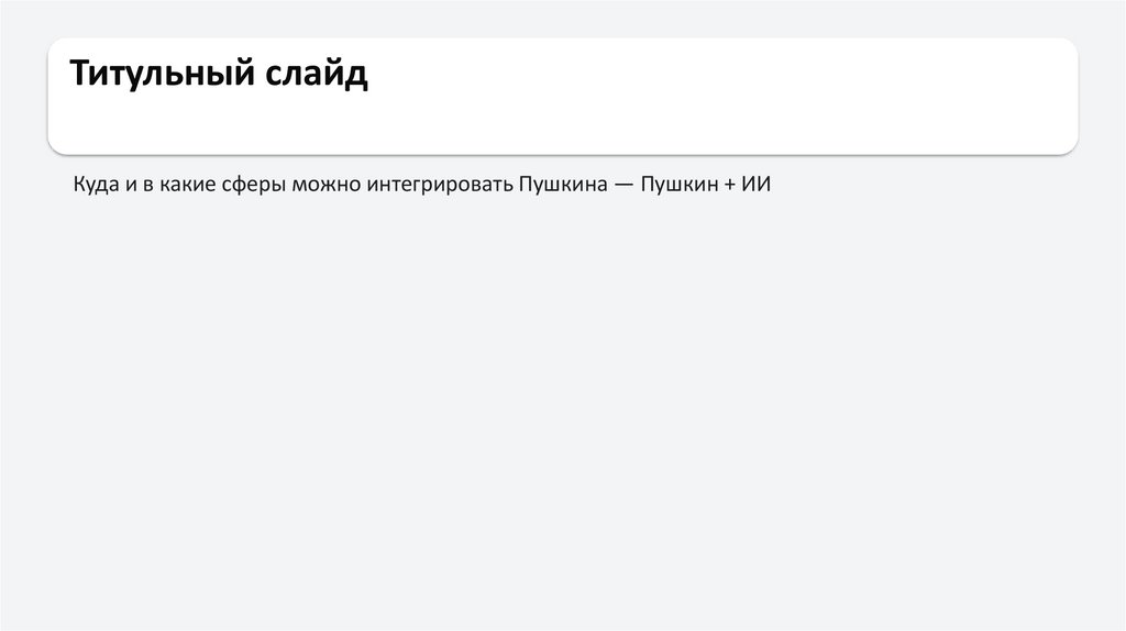 Титульный слайдКуда и в какие сферы можно интегрировать Пушкина — Пушкин + ИИ