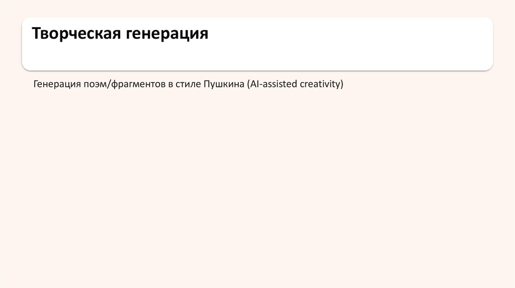 Творческая генерацияГенерация поэм/фрагментов в стиле Пушкина (AI-assisted creativity)