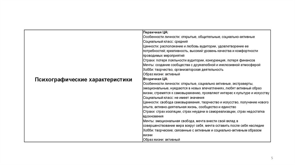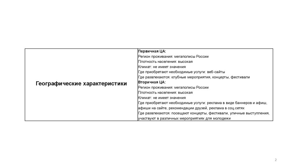 Вторичная ЦА: Аудитория данных организаций (фанаты, слушатели музыкальных