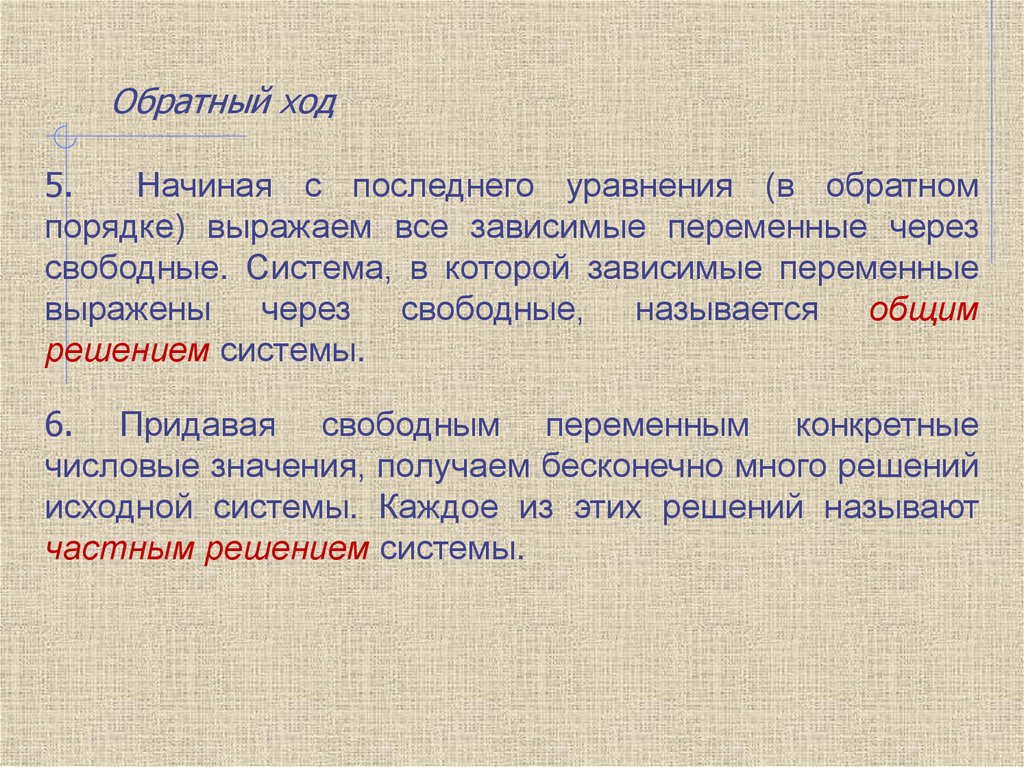 качестве значений для свободных неизвестных