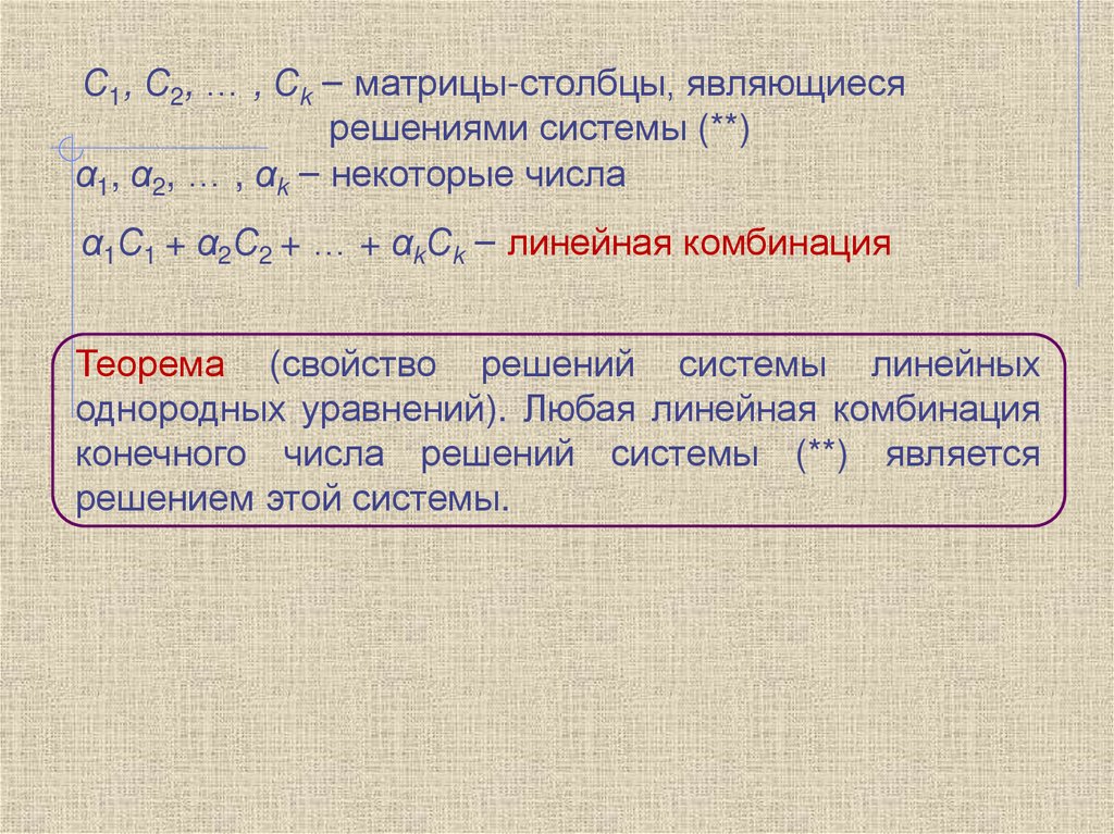 С1, С2, … , Сk – матрицы-столбцы, являющиесярешениями системы (**)