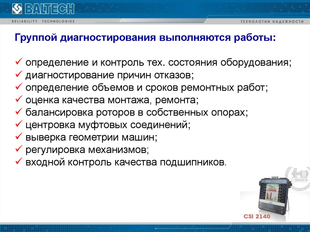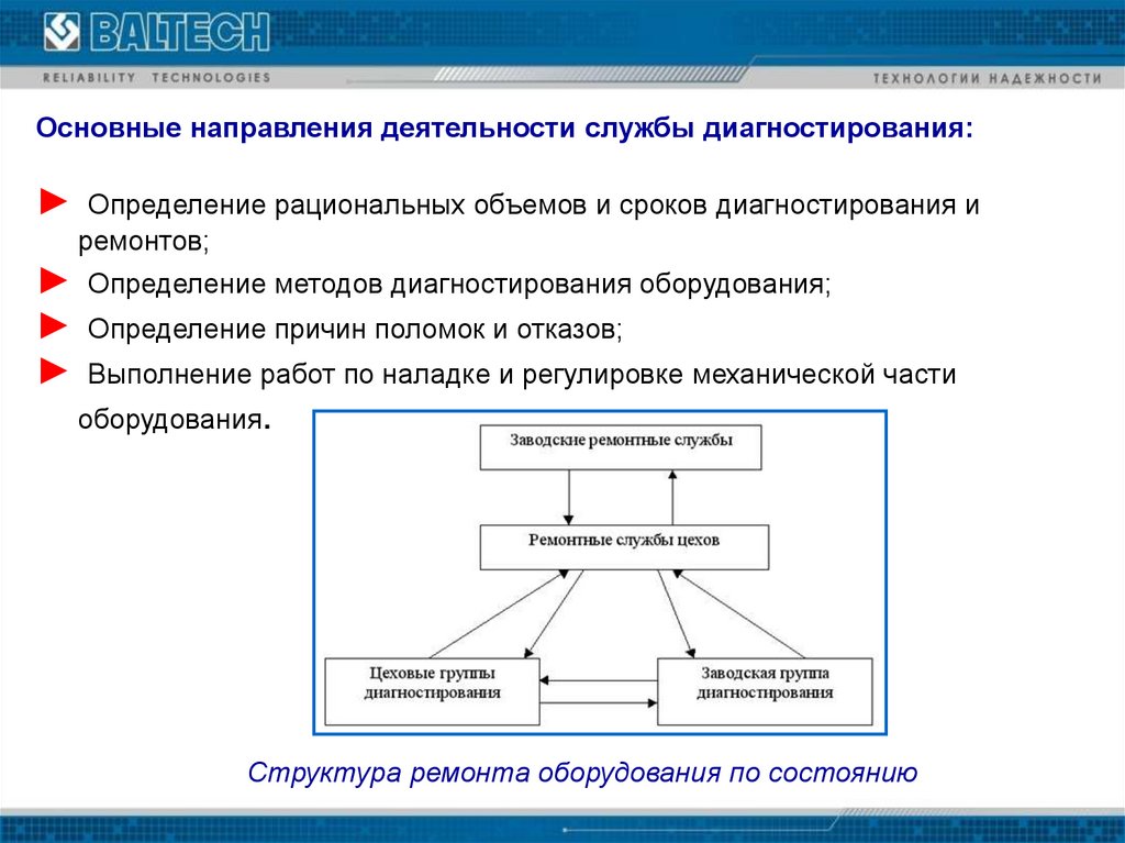 Основные направления деятельности службы диагностирования:► Определение рациональных объемов и сроков диагностирования и