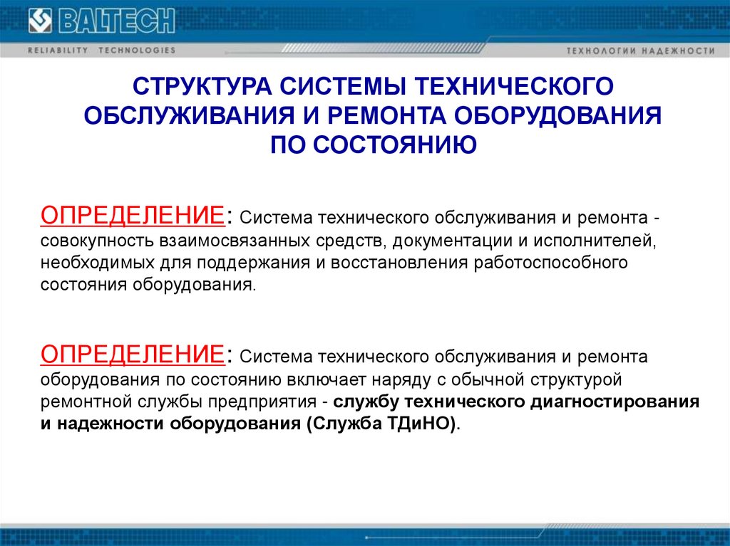 ОПРЕДЕЛЕНИЕ: Система технического обслуживания и ремонта совокупность взаимосвязанных средств, документации и исполнителей,