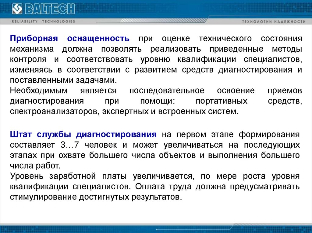 ДАЛЬНЕЙШЕЕ РАЗВИТИЕРазвитие службы технического диагностирования должно включать