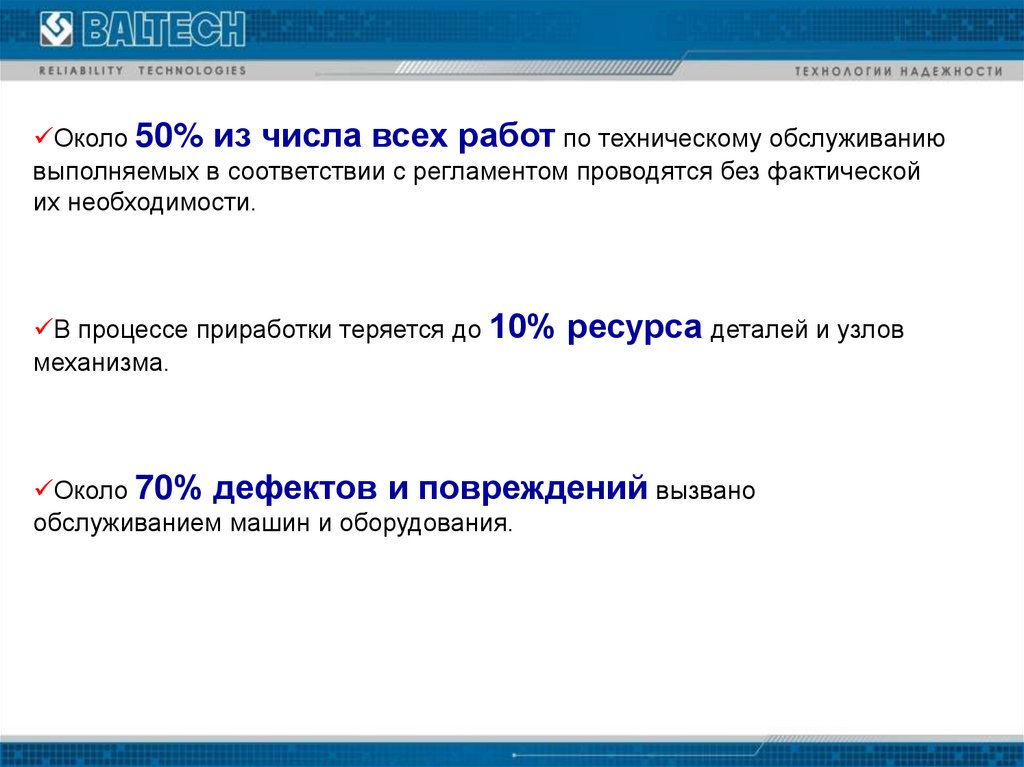 Около 50% из числа всех работ по техническому обслуживаниювыполняемых в соответствии с регламентом проводятся без фактической