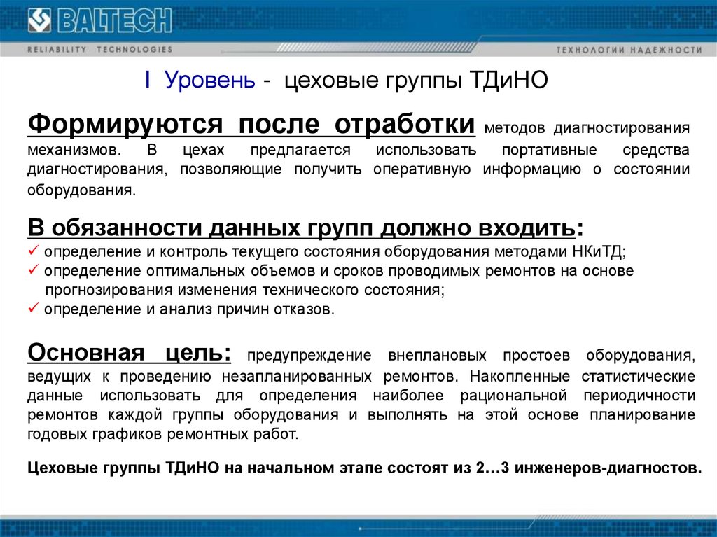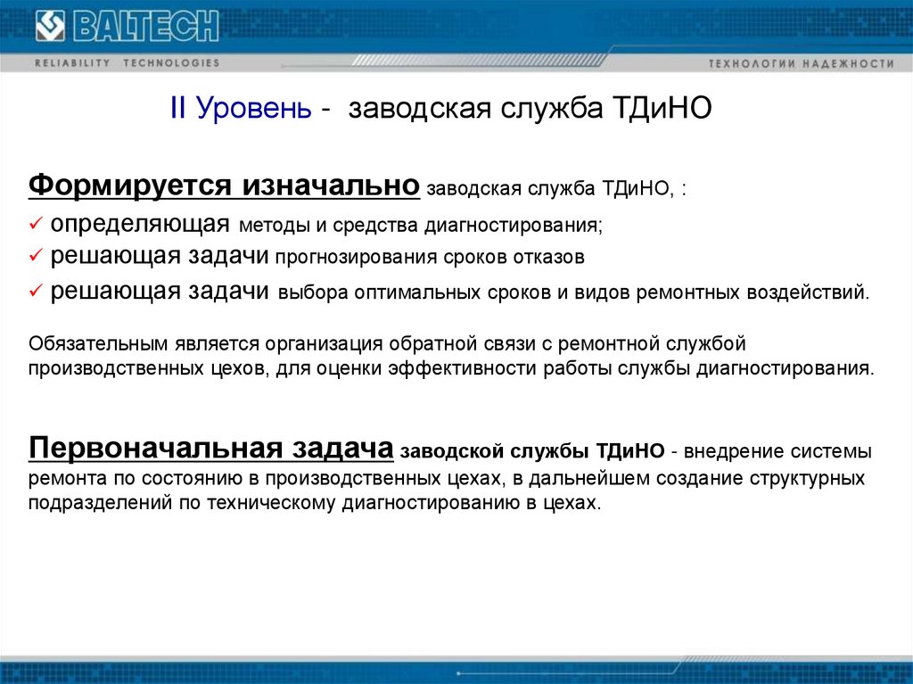 II Уровень - заводская служба ТДиНОФормируется изначально заводская служба ТДиНО, :