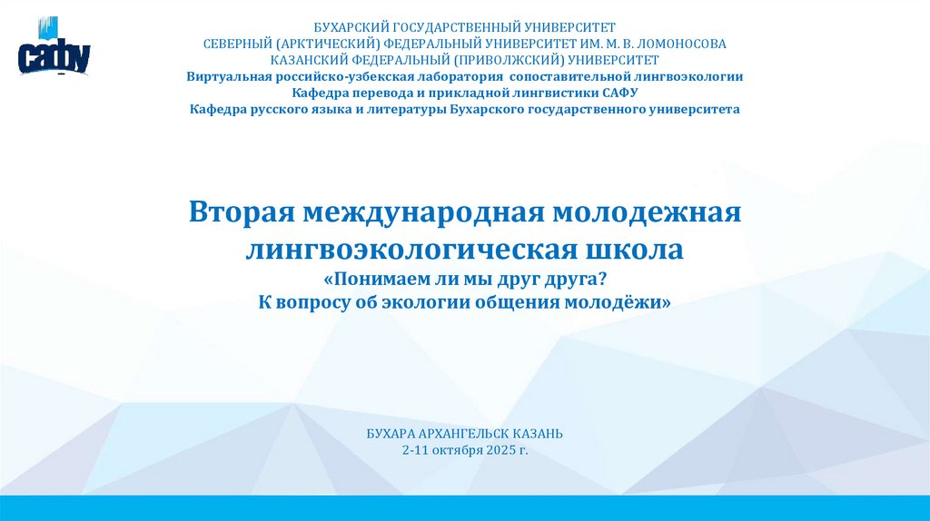 БУХАРСКИЙ ГОСУДАРСТВЕННЫЙ УНИВЕРСИТЕТСЕВЕРНЫЙ (АРКТИЧЕСКИЙ) ФЕДЕРАЛЬНЫЙ УНИВЕРСИТЕТ ИМ. М. В. ЛОМОНОСОВА