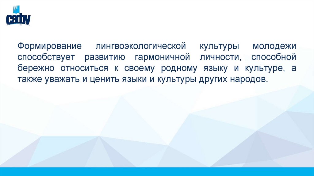 Формирование лингвоэкологической культуры молодежиспособствует развитию гармоничной личности, способной