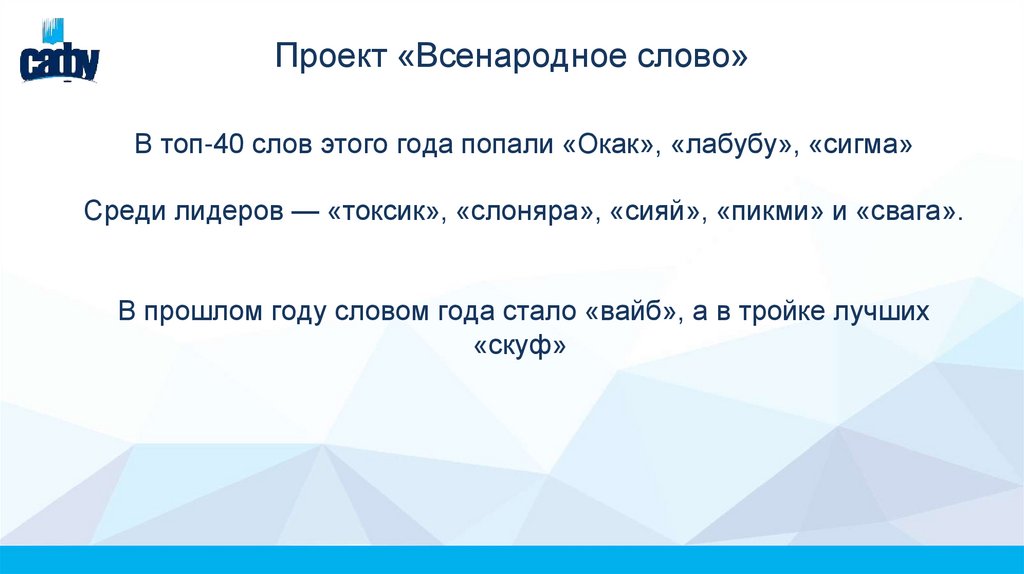 Проект «Всенародное слово»В топ-40 слов этого года попали «Окак», «лабубу», «сигма»