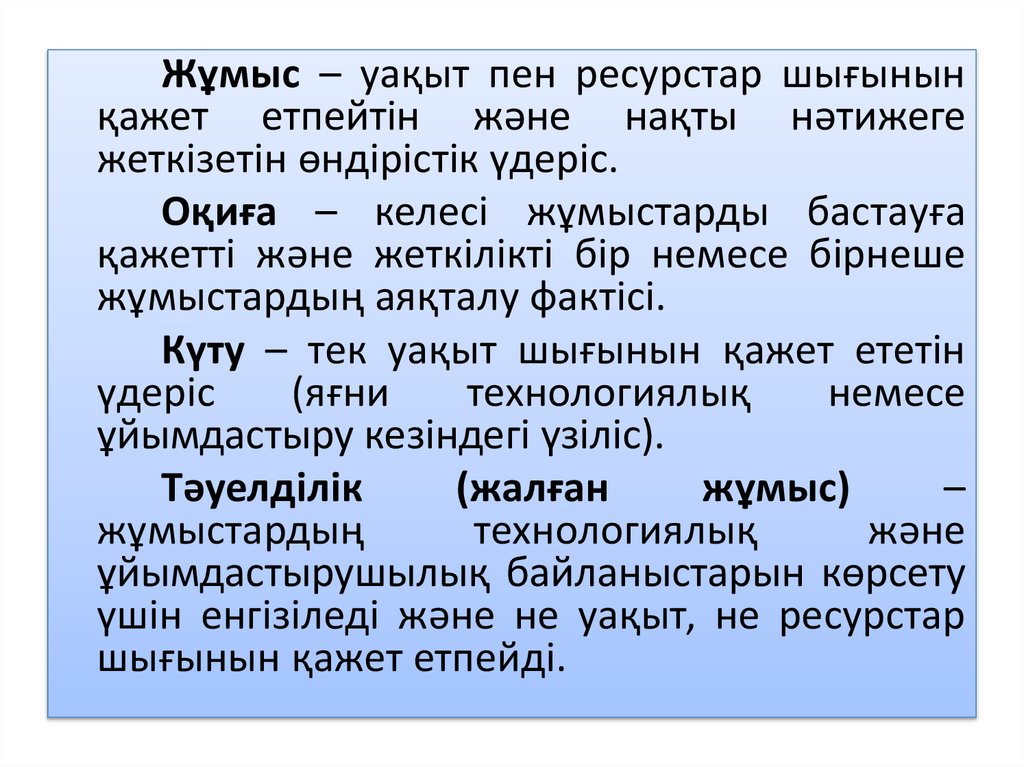 Жұмыс – уақыт пен ресурстар шығынынқажет етпейтін жəне нақты нəтижеге
