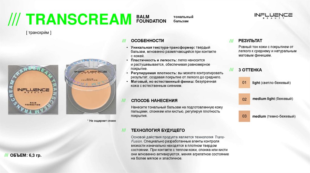 INFLUENCE_BEAUTY_тональный_бальзам_Transcream