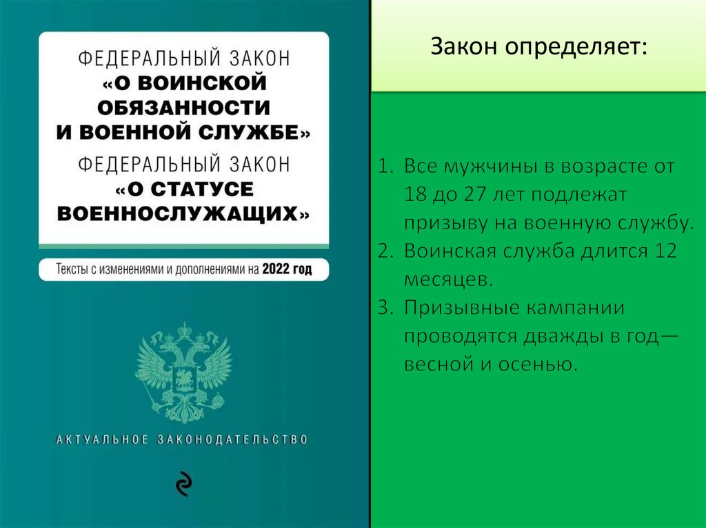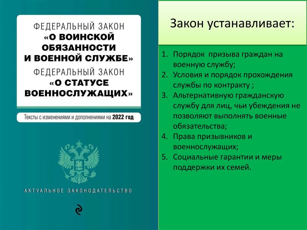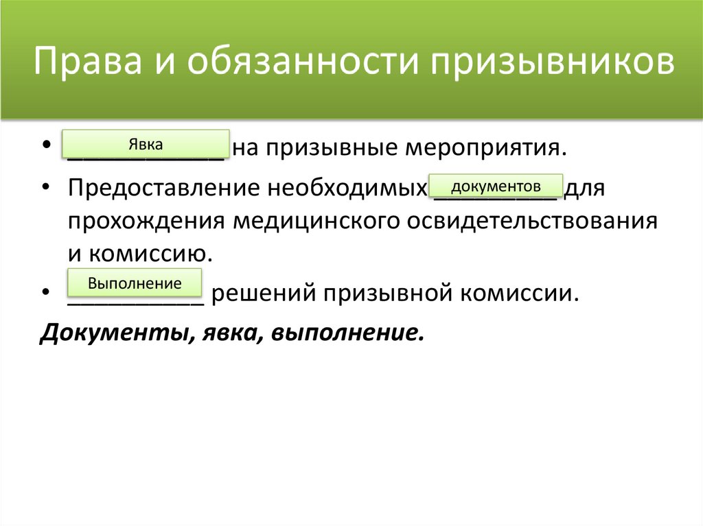 Закон определяет:19. Права и обязанности призывников