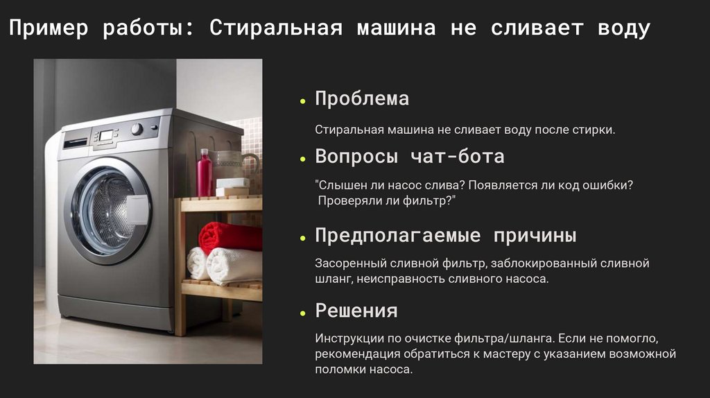 От простых ("проверьте, не засорился ли сливной шланг") до