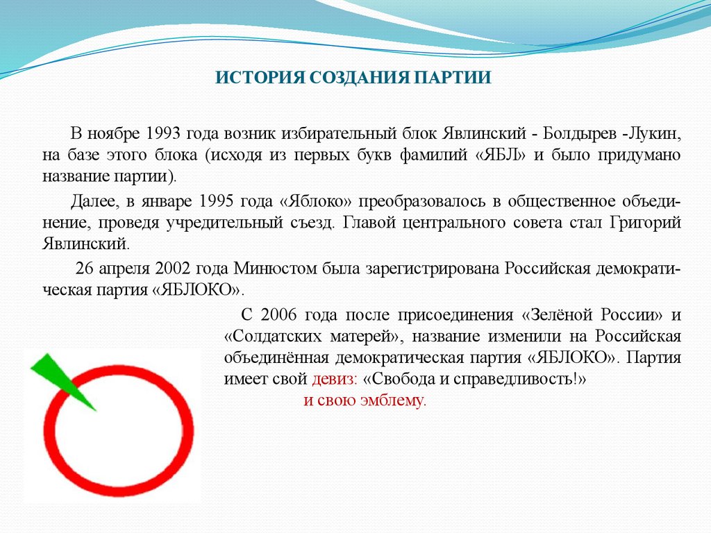 объединённая демократическая партия «ЯБЛОКО». Партия