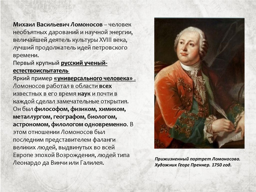 Михаил Васильевич Ломоносов – человекнеобъятных дарований и научной энергии,