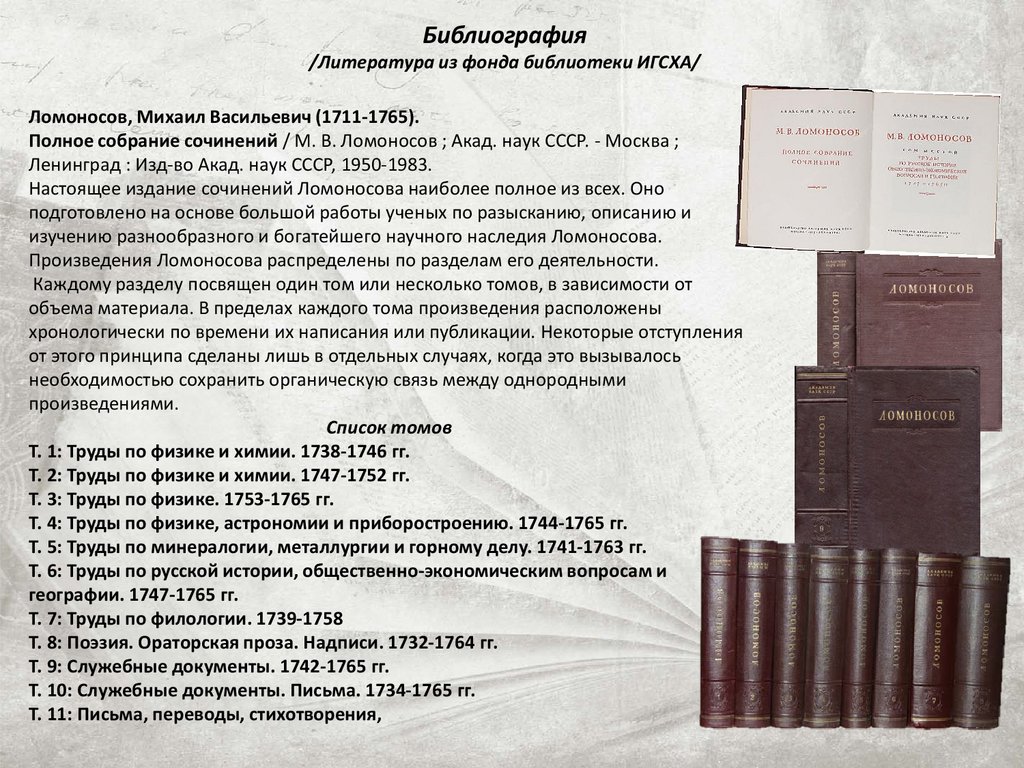 Настоящее издание сочинений Ломоносова наиболее полное из всех. Оно