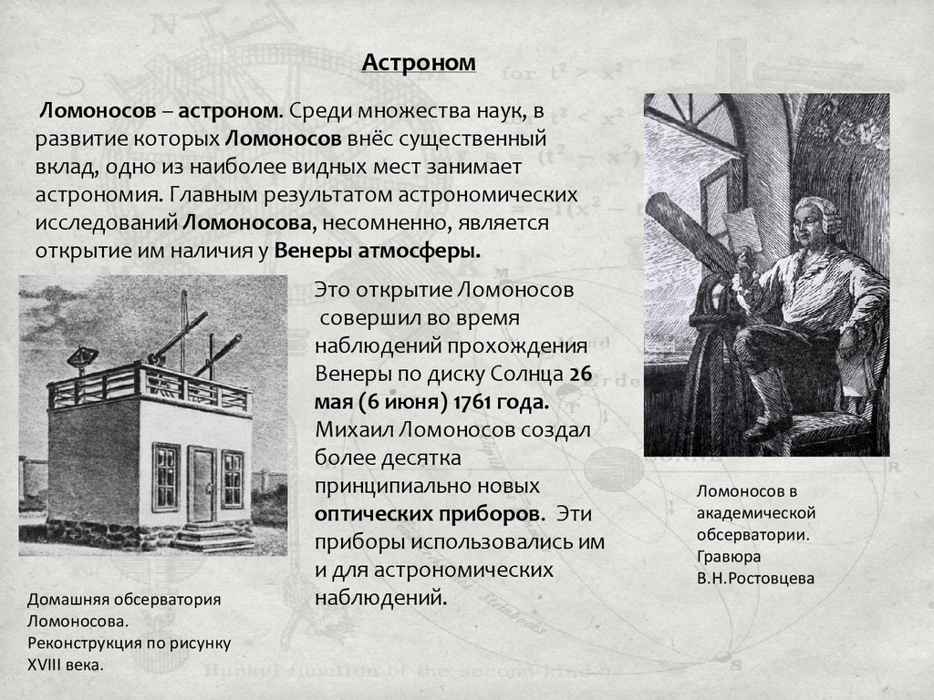 АстрономЛомоносов – астроном. Среди множества наук, в