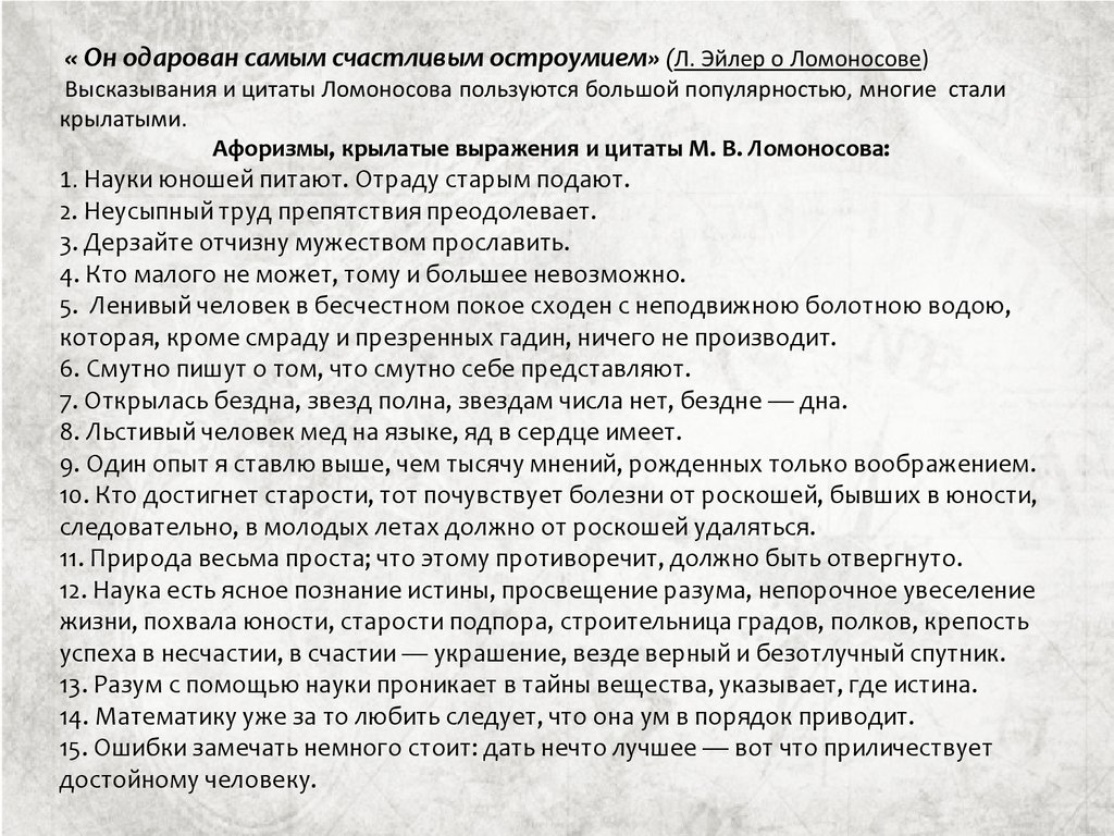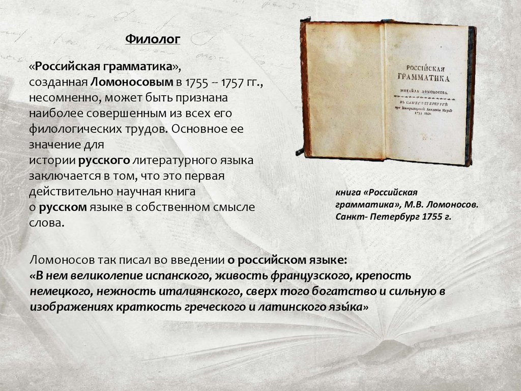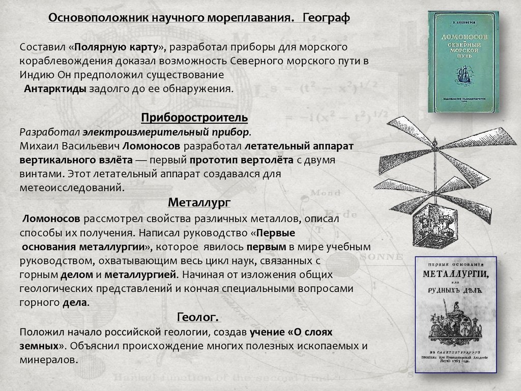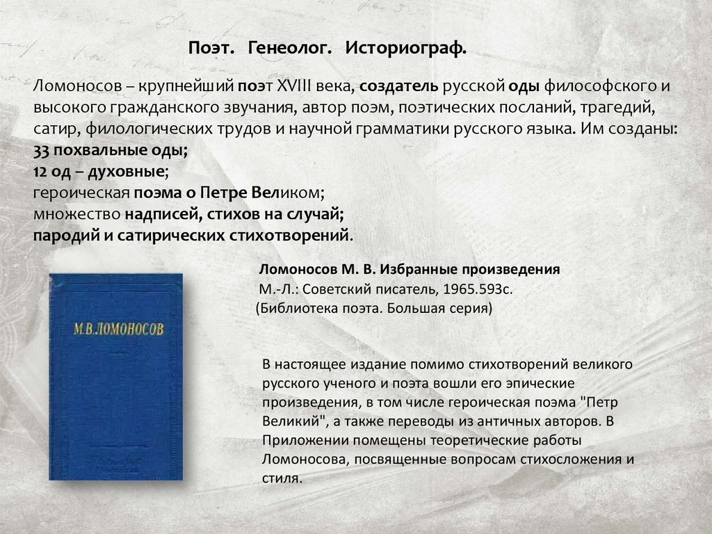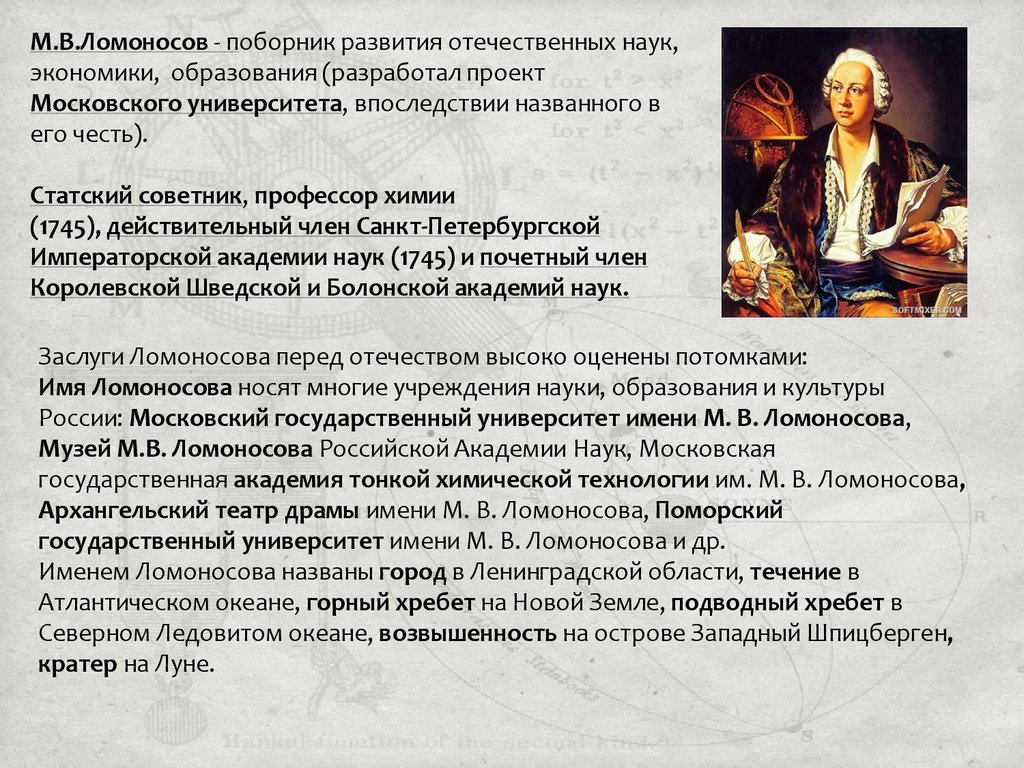 поэта Михаила Васильевича Ломоносова. Особое внимание уделено вкладу