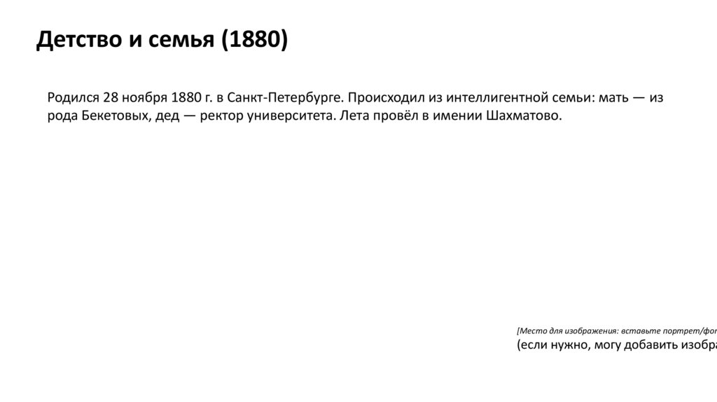 рода Бекетовых, дед — ректор университета. Лета провёл в имении Шахматово.