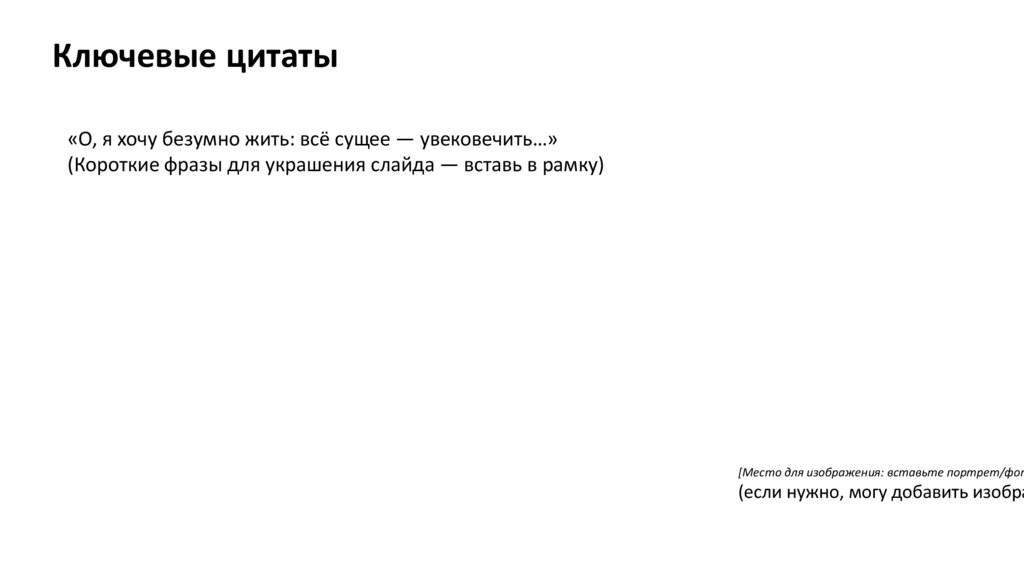 Ключевые цитаты«О, я хочу безумно жить: всё сущее — увековечить…»