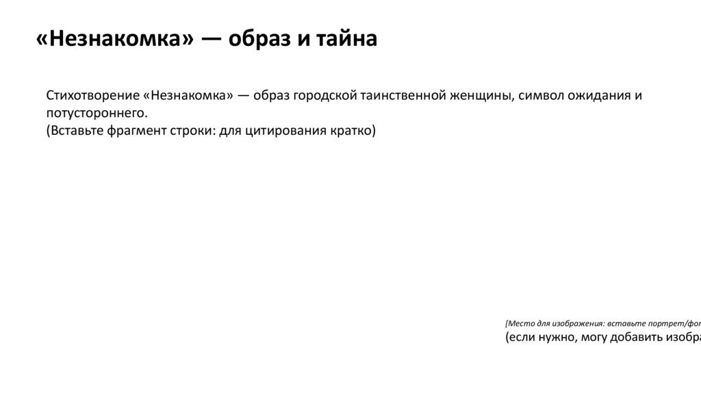 «Незнакомка» — образ и тайнаСтихотворение «Незнакомка» — образ городской таинственной женщины, символ ожидания и