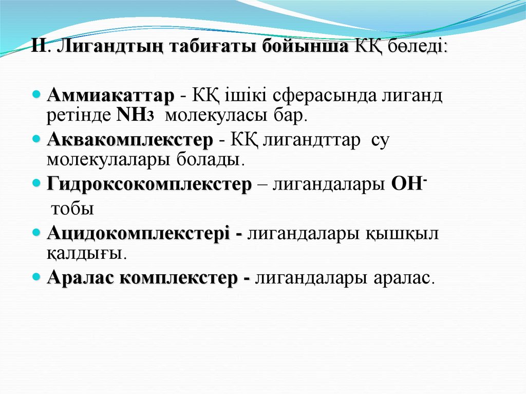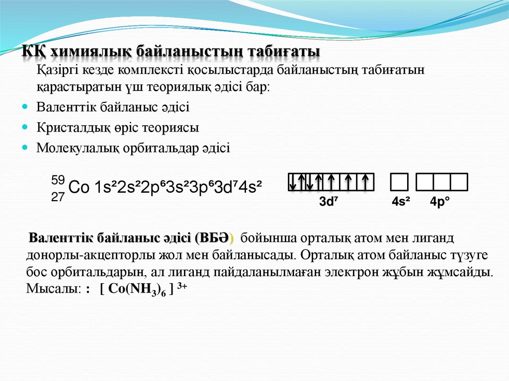 КҚ химиялық байланыстың табиғатыҚазіргі кезде комплексті қосылыстарда байланыстың табиғатын