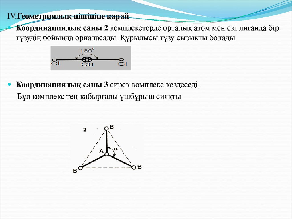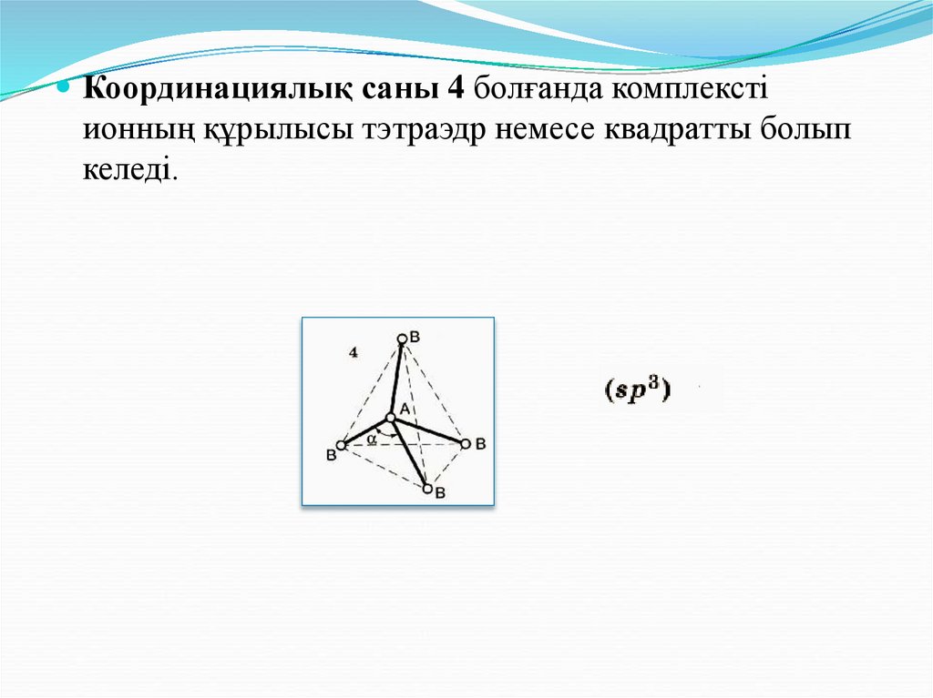 саны сол комплекс түзушінің координациялық саны деп аталады.