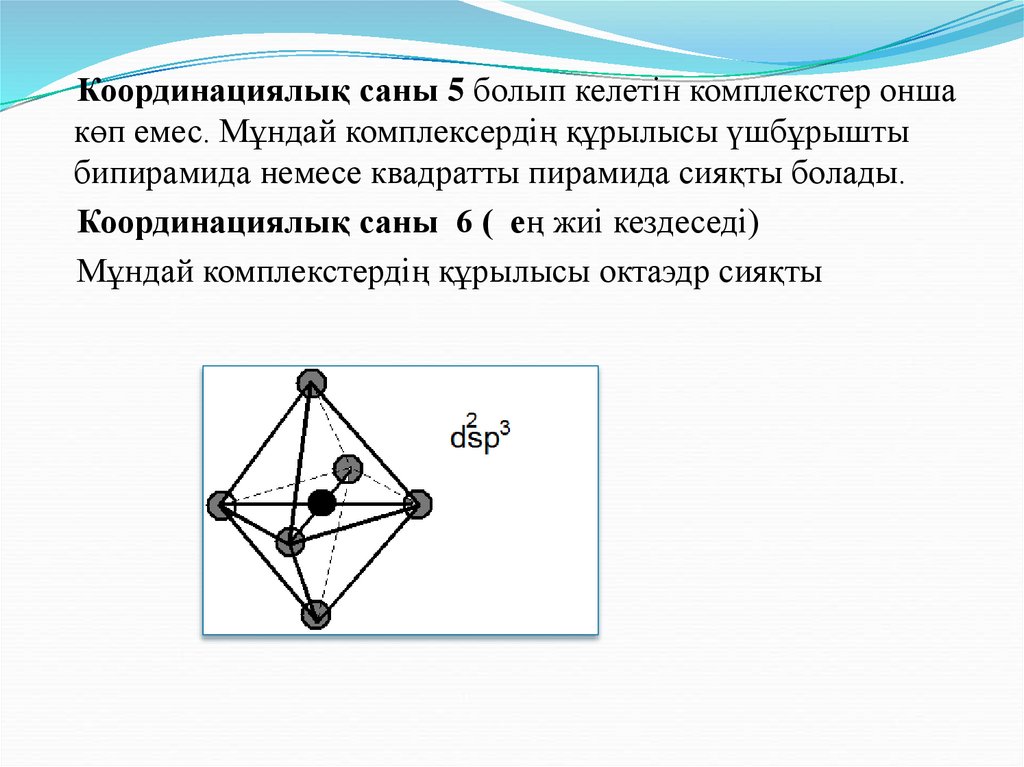 Жиі кездесетін комплексті қосылыстарда координациялық сан алтыға